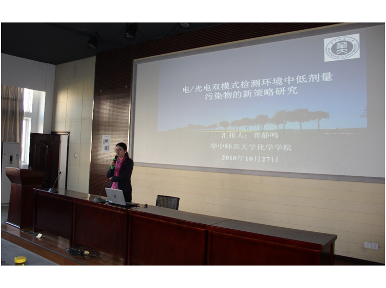 10月27日上午伟德国际VICTOR1946开展了知名员工系列学术报告,华中师范大学化学公司龚静鸣教授在龙山校区D111报告厅为公司伟德国际VICTOR1946本科生、研究生和部分教师代表作了“电/光电双模式检测环境中低剂量污染物的新策略研究”,报告由伟德国际VICTOR1946副经理王钧伟教授主持。