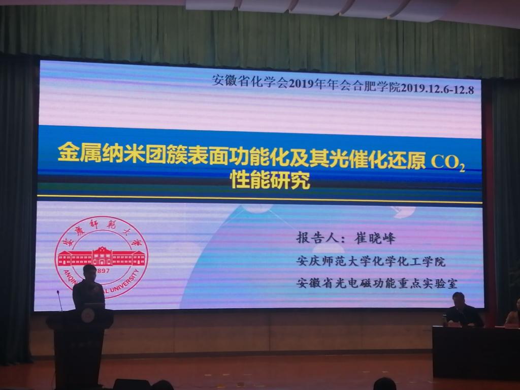 12月6日至12月8日,安徽省化学学会2019年学术年会暨第十九届化学教学改革研讨会在合肥公司召开,伟德国际VICTOR1946崔晓峰副教授受邀参加了此次会议,并作题为《金属纳米团簇表面功能化及其光催化还原 CO2 性能研究》学术报告。