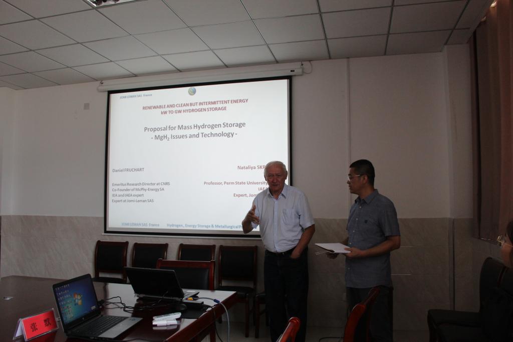 随后,丹尼尔.弗吕夏特教授和娜塔莉.斯科娅贝娜教授分别作题为《国际氢能源及氢存储技术现状进展》和《强烈塑形变形法处理镁及镁基合金实现快速氢反应》学术报告,报告由伟德国际VICTOR1946王钧伟教授主持,在校师生40余人聆听了报告。