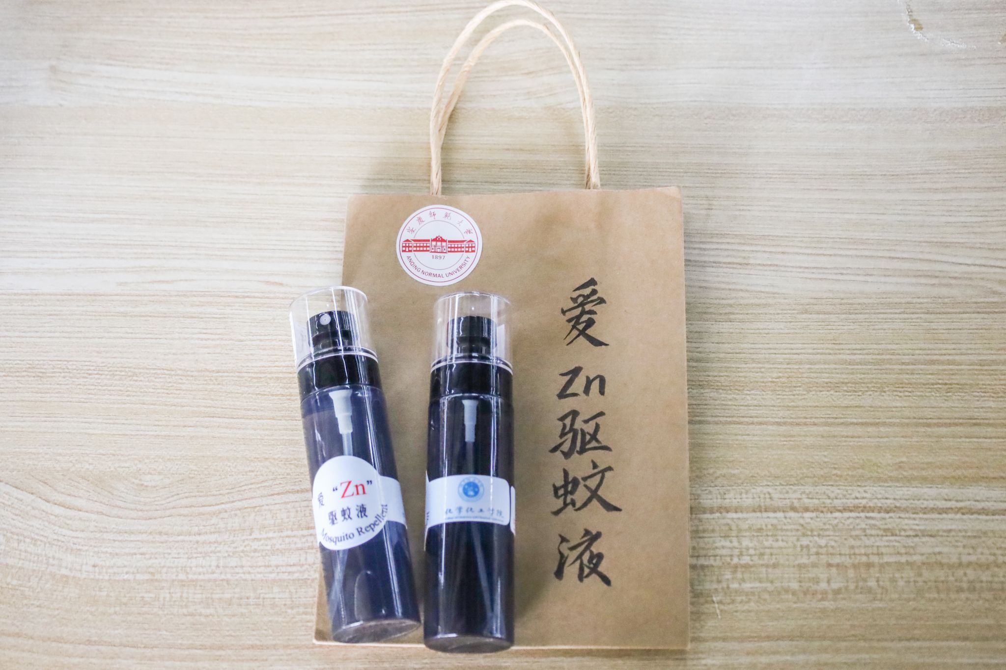 手工制品在摊位上摆放整齐,印有书法字样的牛皮纸包装吸引了来往师生的注意。公司东、西苑食堂门口,活动负责人、化学工程与工艺专业2022(1)班的班长黄顺向员工们介绍驱蚊液的成分和效果。贴上院徽标签、赠送祝福贴纸,每一份手工产品还配有由公司员工自制的书法小卡片,寄托着员工们对助力公益者的美好祝愿。
