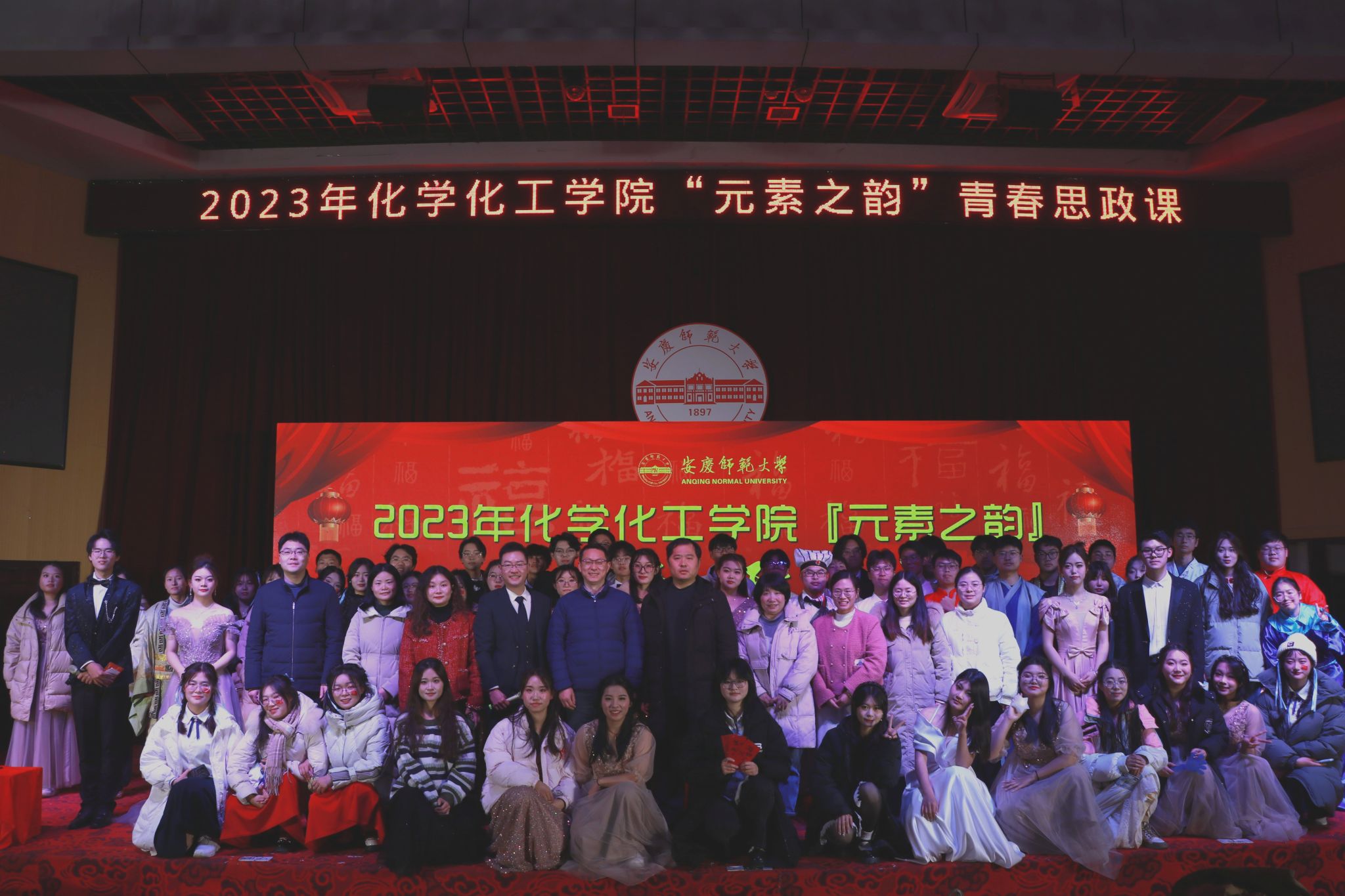 活动负责人介绍,本次艺术思政课的另一大亮点是节目名称及内容有效地融入了专业因素,例如《化学时装秀》中,同学们身着DIY各种化学反应方程式的实验服,配合活力动感的音乐,气场全开、活力四射;互动阶段的反诈知识问答,既活跃了现场氛围,又再一次绷紧了同学们防诈之弦;辅导员们自编自唱的《辅导员阵线联盟》掀起了活动的另一高潮,创意幽默的歌词是他们的心里话,更是饱含对同学们的期待与祝福;大合唱《万疆》压轴出场,激昂的歌声中充满了对祖国的热爱。