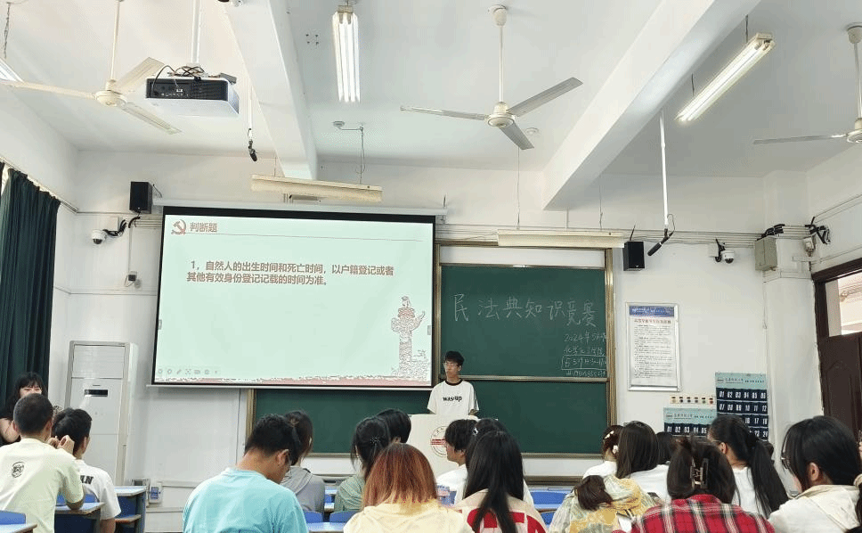 此次比赛共有八支队伍参赛,由一名代表进行抢答,答题选手要在限定时间内快速准确地给出答案。竞赛内容涵盖民法典的基本原则、基本制度、具体规定等多个方面,通过选择题与判断题的形式,考查同学们的法律知识储备。抢答环节中,参赛队员们反应迅速、积极参与,展现了同学们对《中华人民共和国民法典》内容的熟练掌握和出色的应变能力。经过激烈角逐,2022级材料化学2班获得一等奖。
