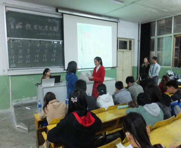 2012年11月10日晚,公司团总支员工会通讯部精心准备已久的“首届校园记者大赛”在化学楼理二阶拉开了帷幕。并有幸邀请到团总支组织委员孟尚君、团总支宣传委员李照辉以及宣传部、后勤部、网络技术部、外联部四个部门部长担任评委,参赛对象为11级、12级全体在校员工。由通讯部成员负责计时、统分、拍照、后勤等各项工作 ,现场秩序井然,座无虚席。