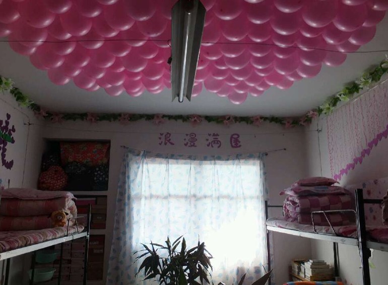 一进入宿舍楼,首先映入眼帘的是各式各样的寝室名。有富含自然气息的“田园轩”,有奇思妙想的“七葩部落格”,有诙谐幽默的“步及阁”,有气势恢宏的“七匹狼”、、、、、、看到这些趣味十足的寝室名,让人禁推门而入:优雅的布窗、精美的吊饰、整齐的被褥、一尘不染的地面、用七彩贴画装饰的墙面等,无不彰显着同学们创意和用心,整个寝室透着一种蓬勃向上的青春朝气!
