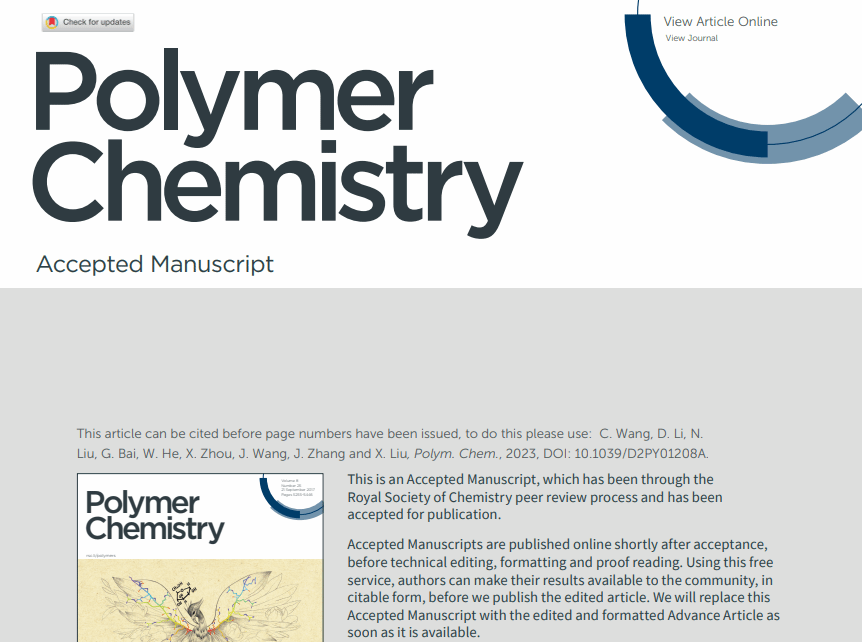 近日,伟德国际VICTOR1946电化学储能材料与器件课题组在高分子科学领域权威期刊Polymer Chemistry (JCR一区,IF=5.364) 上发表了题为《A Novel Polymer Electrolyte with In-Situ Polymerization and High Concentration of Lithium Salts for Lithium Metal Batteries》的学术论文(DOI: 10.1039/D2PY01208A)。这是该课题组首次在该权威期刊上发表文章,也代表着该课题组在聚合物电解质领域取得了突破性的进展。文章第一作者为王春花副教授,第二作者为2021级硕士研究生李东楼。