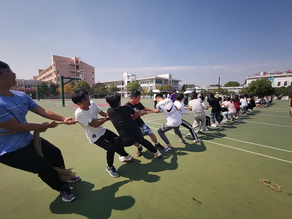 “迎新杯”拔河比赛以班级为单位组队,以抽签的方式进行小组赛最终角逐冠、亚、季军。