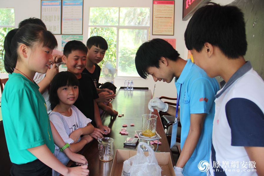 据了解,这是伟德国际VICTOR1946在“科技扶贫,教育先行”扶贫模式中走进偏远山区太湖西冲开展的微科研探究活动内容之一。在保证安全有序的前提下,激发孩子们对化学的兴趣,普及生活中的化学知识。