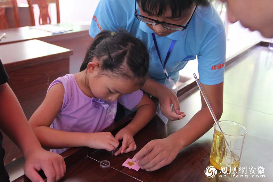 团队成员给小朋友演示琥珀实验