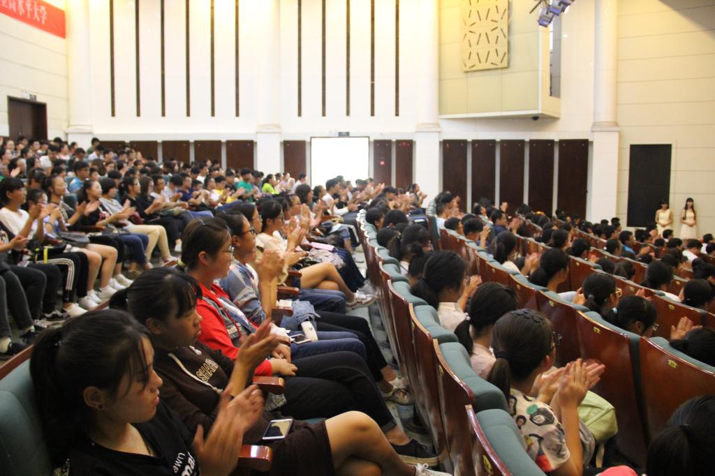 2014级化学二班的胡慧洁同学代表老生发言,介绍了自己的成长经历,并鼓励新同学们要谨记家长的期望和老师的教诲,努力学习,提升素质,用实际行动谱写自己的精彩人生。新生代表杨舒婷同学在发言中表示,会充满青春朝气,不断提升自己;珍惜大学时光,为自己的梦想努力奋斗。