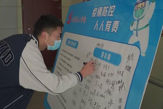 此外,公司还开展了“我承诺我践行”疫情防控宣誓签名活动,倡议全体师生党员做好“七个带头”。教师党员江彬彬在承诺书上郑重地签下了自己的名字,他说“作为一名教师党员,在疫情防控常态化的背景下,我们更应该带头遵守疫情防控规定,引导师生正确理解、积极配合、科学参与疫情防控,切实维护校园秩序和安全。”