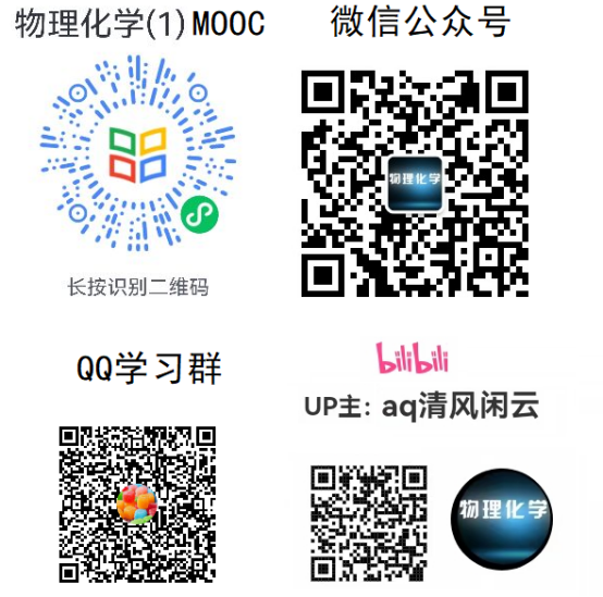 开设《物理化学》MOOC、微信公众号、QQ学习群和B站,热烈欢迎需要的同学扫码关注!